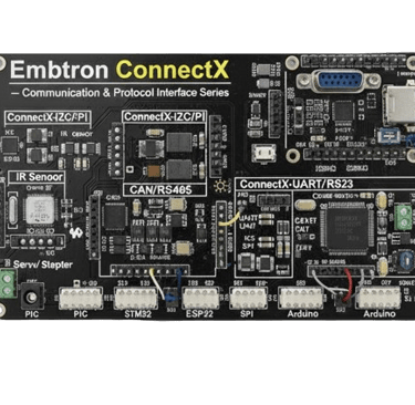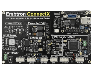 Embtron ConnectX is designed for learning and experimenting with major embedded communication protocols. It provides hands-on practice with UART, I²C, SPI, CAN, RS485, RS232, LIN, and wireless communication—essential for modern embedded systems.